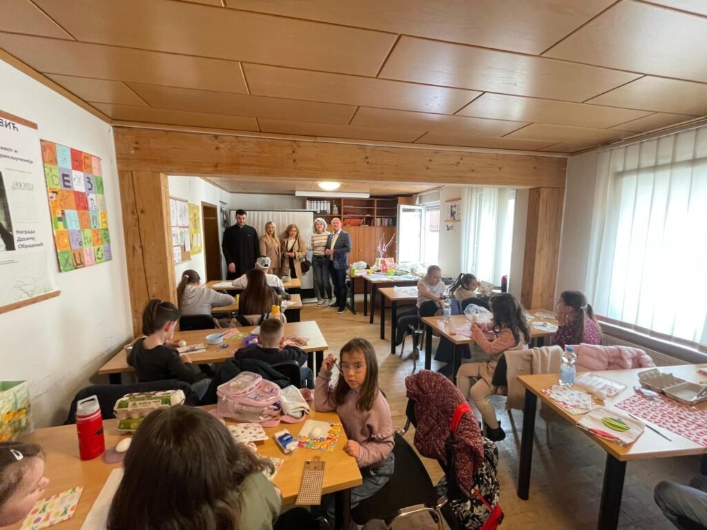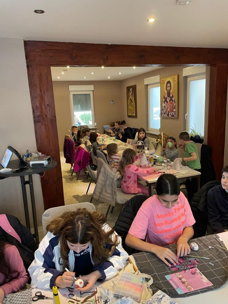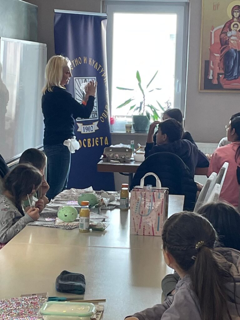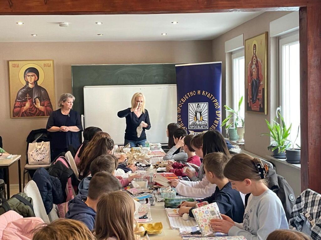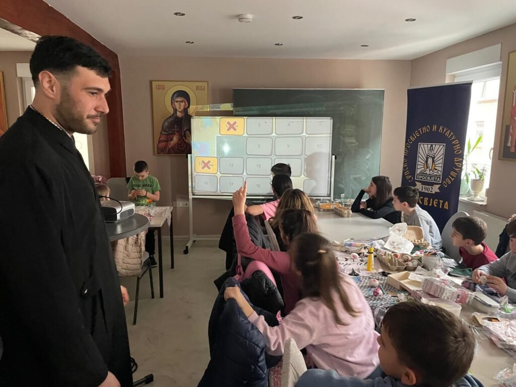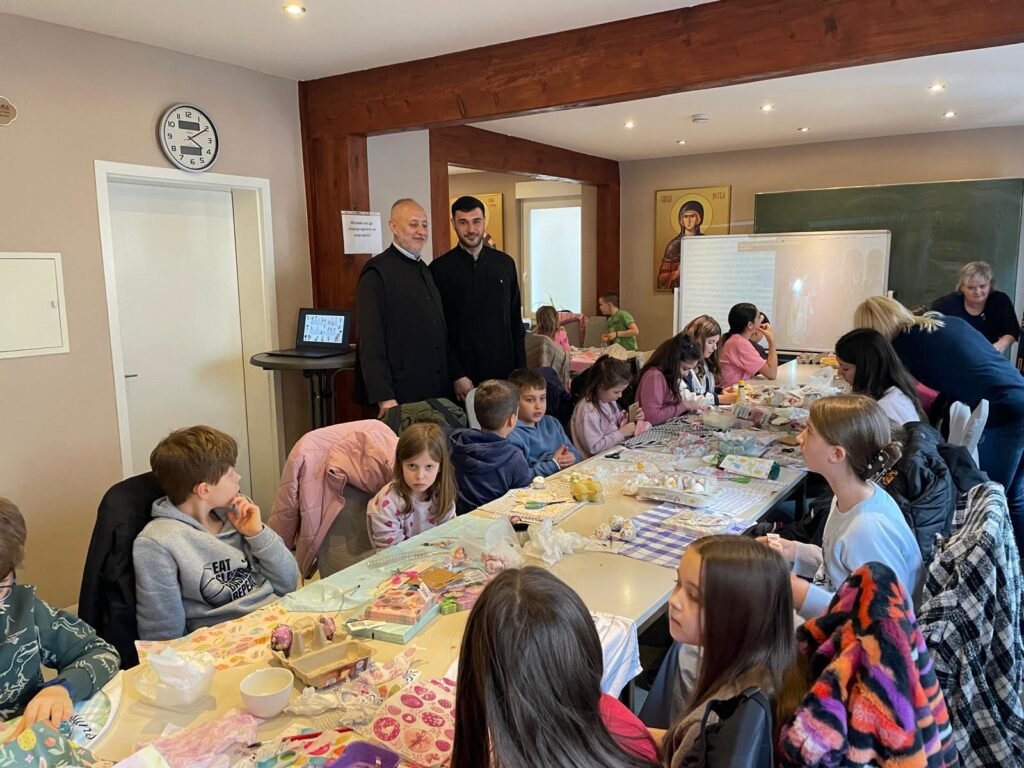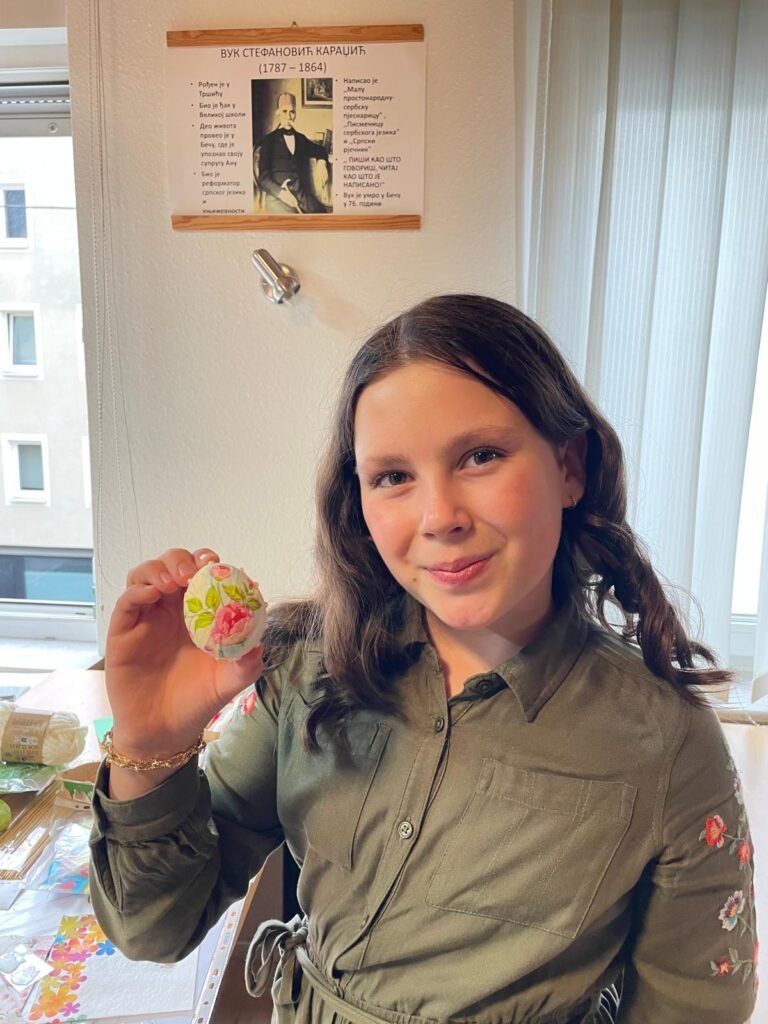 Radionica je osmišljena kao prostor učenja, stvaranja i druženja, ali i kao prilika da se djeca podsjete na važnost tradicije i vjere u očuvanju srpskog identiteta u dijaspori. U prvom dijelu radionice đakon Marko Kolović govorio je o Vaskrsu, njegovom značaju i običajima koji prate ovaj najveći hrišćanski praznik. Potom su učiteljice srpske dopunske škole vodile kreativni dio – ukrašavanje jaja, kao i obuku u dekupaž tehnici.